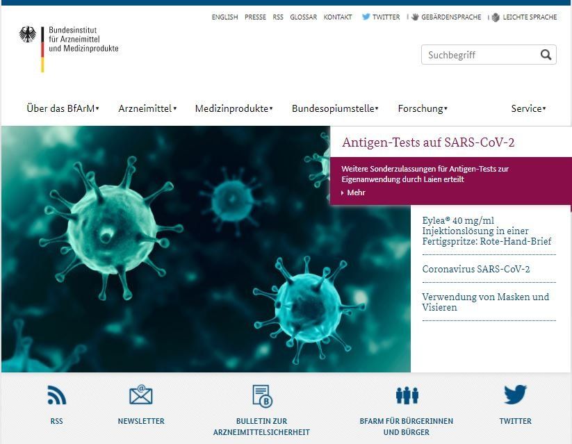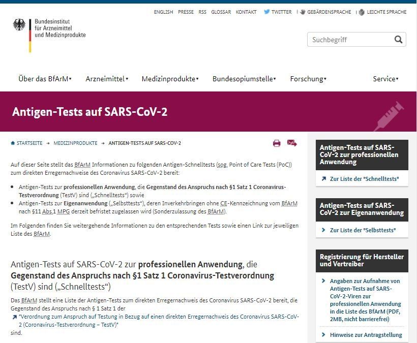 Das BfArM stellt eine Liste der Antigen-Tests zum direkten Erregernachweis des Coronavirus SARS-CoV-2 bereit.